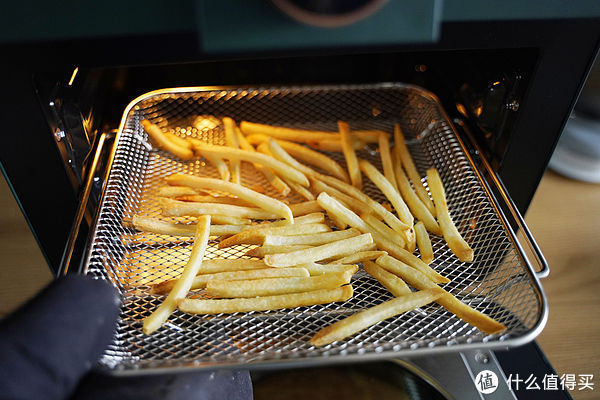 推荐大家使用「空气炸」功能的时候搭配烤篮来用。比起空气炸锅来说,热循环空间更加,热风循环更立体,食物可以完全平铺开来,受热面更均匀,食材往里面一放就可以了,全程不需要翻拌,使用更加省心~